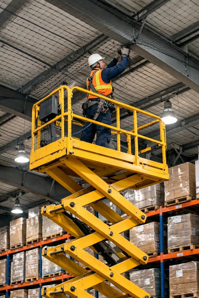 Nossa equipe é treinada para trabalho em altura e acesso técnico, utilizando equipamentos adequados, plataformas elevatórias e protocolos rígidos de segurança.